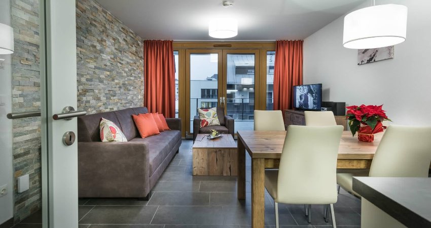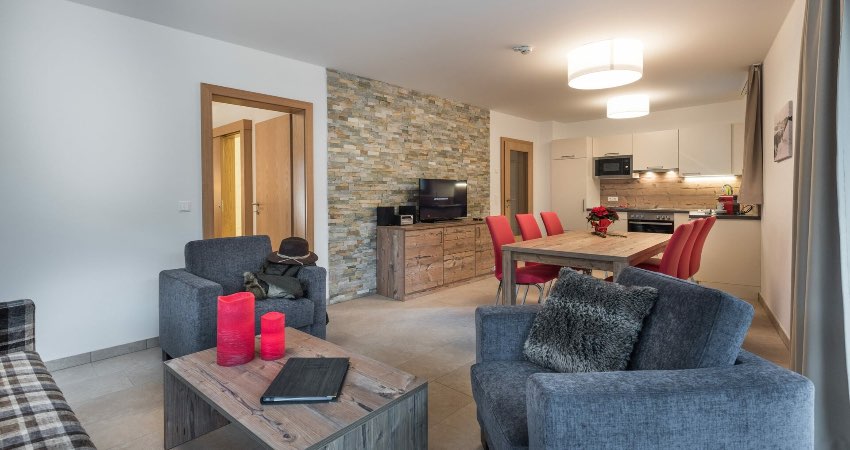 Superior apartment (photos from 10 to 14) - This 70 square meter modern and bright apartment furnished in a refined Alpine style can accommodate from 4 to 6 people and includes two bedrooms and two bathrooms. It also boasts a balcony.