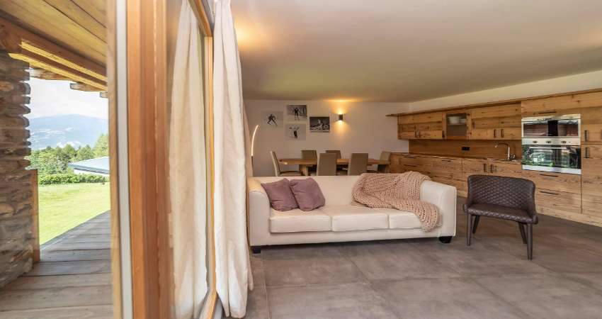 These apartments, furnished in an elegant and refined Alpine style, offer the ideal accommodation for up to six people. The unit consists of a living area with sofa and TV, a dining area, a kitchen equipped with hob, fridge, oven, microwave and dishwasher, two bedrooms with comfortable beds and large wardrobes, and modern bathrooms with shower and washing machine. Bed linen and towels are included and are provided directly by the owner.