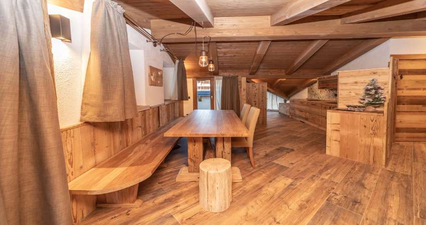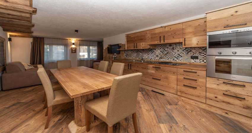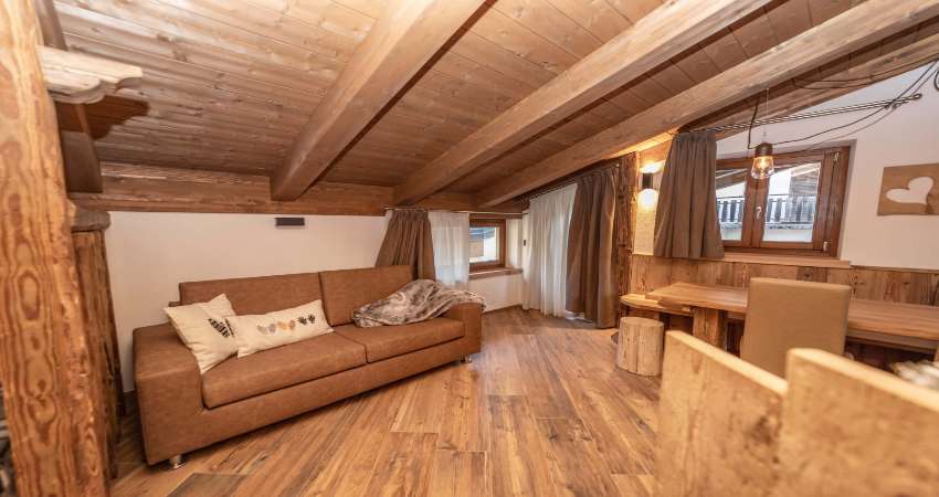 These apartments, furnished in an elegant Alpine style with a warm and welcoming atmosphere, offer ideal accommodation for up to six people. The units consist of a living area with a double sofa bed and TV, a dining area, a kitchen equipped with a hob, fridge, dishwasher, traditional oven and microwave, a bedroom with a comfortable double bed and large wardrobes, and a modern bathroom with shower and washing machine. Bed linen and towels are included and are provided directly by the property.
