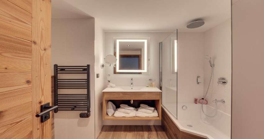 This hotel offers elegant and refined rooms, furnished in a modern Alpine style. All rooms have their own bathroom with hairdryer and complimentary toiletries, a seating area, a TV, large wardrobes and a safety deposit box.