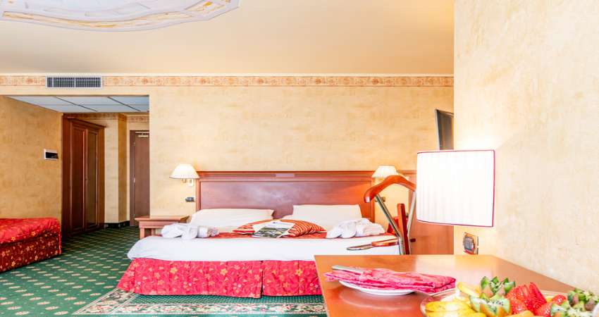 All rooms have their own en suite bathroom with a hairdryer, bathrobes, slippers, and complimentary toiletries. They also feature comfortable beds, a sitting area or desk, a TV, a minibar, spacious wardrobes, and a safety deposit box. Some rooms also offer beautiful views of the surrounding mountains.