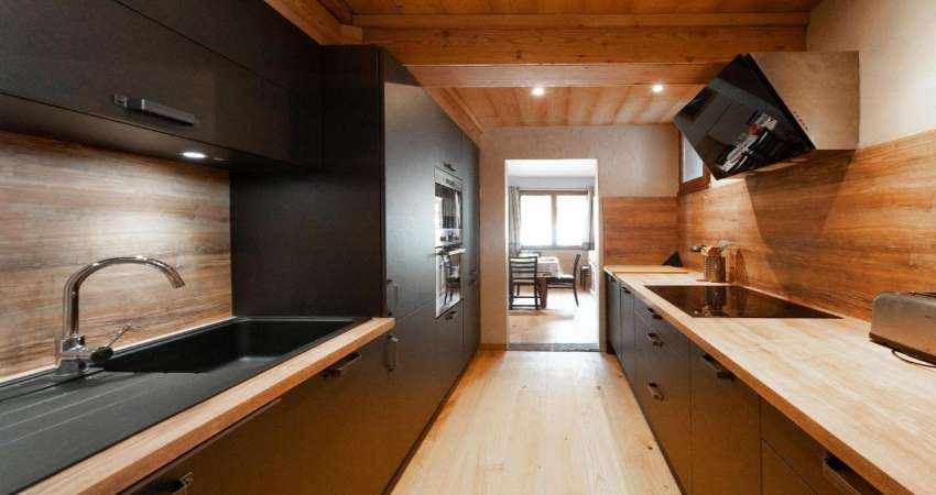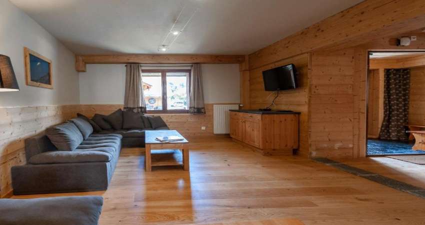 This chalet offers cosy and comfortable apartments, furnished in a typical Alpine style with wooden panelling on the walls.