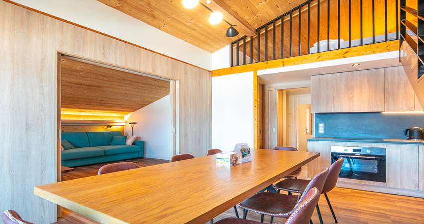 All accommodations have a living room with TV, a dining area with table and chairs, a kitchen equipped with hob, refrigerator, dishwasher, oven, microwave, electric kettle and coffee machine, bedrooms with both double and single beds, and modern bathrooms with hairdryers. In addition, the units also boast a beautiful balcony from which you can enjoy a beautiful view of the surrounding mountains.