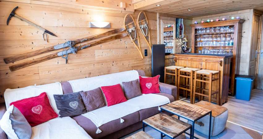 This cosy and comfortable property is furnished in a classic Alpine style, with wood panelling on the walls.