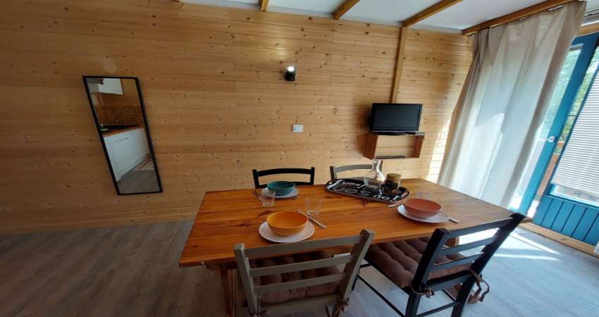 This studio can accommodate up to four people and consists of a living area with a sofa bed, a TV, a dining area, a kitchenette with a hob, fridge, dishwasher, microwave, coffee machine and raclette set, a bedroom with a double bed and a bathroom with a bathtub. There is a south-facing balcony.